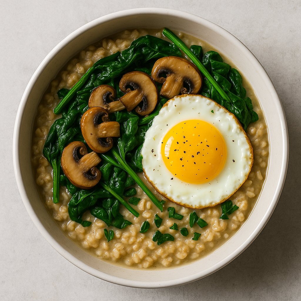 Why it’s healthy: Oats aren’t just for sweet; savory versions provide fiber + protein + veggies.